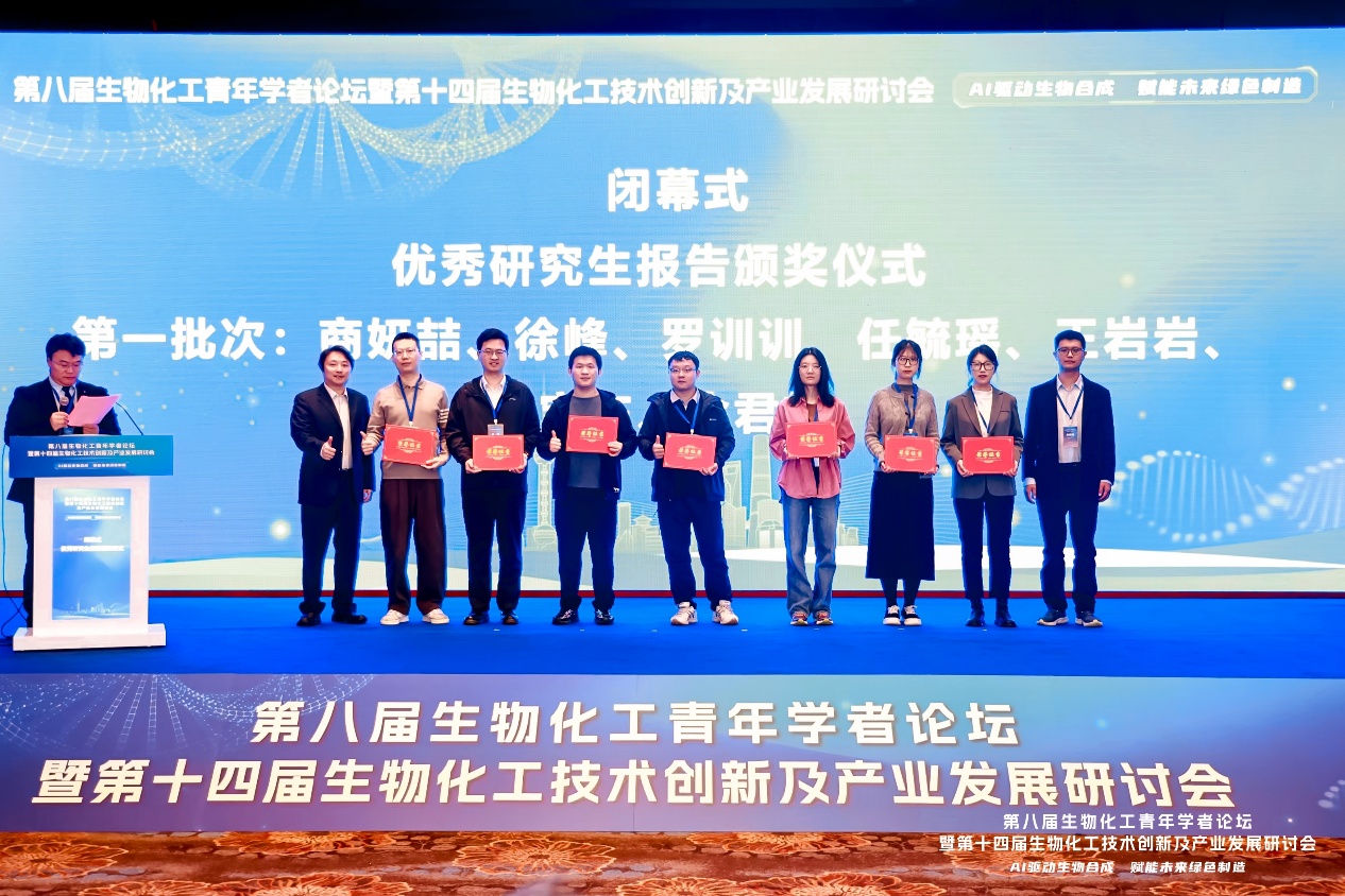Yuyao Ren won the Outstanding Oral Presentation Award in the Postdoctoral and Graduate Session at the 8th Biochemical Engineering Young Scholars Forum & the 14th Symposium on Technological Innovation and Industrial Development, which was held in Shanghai from November 7 to 9, 2025.