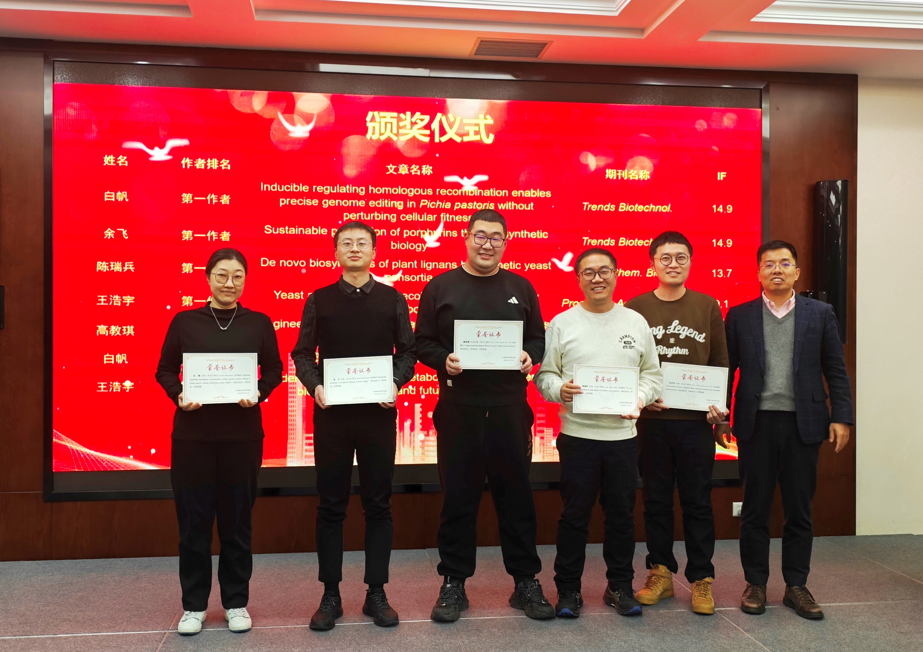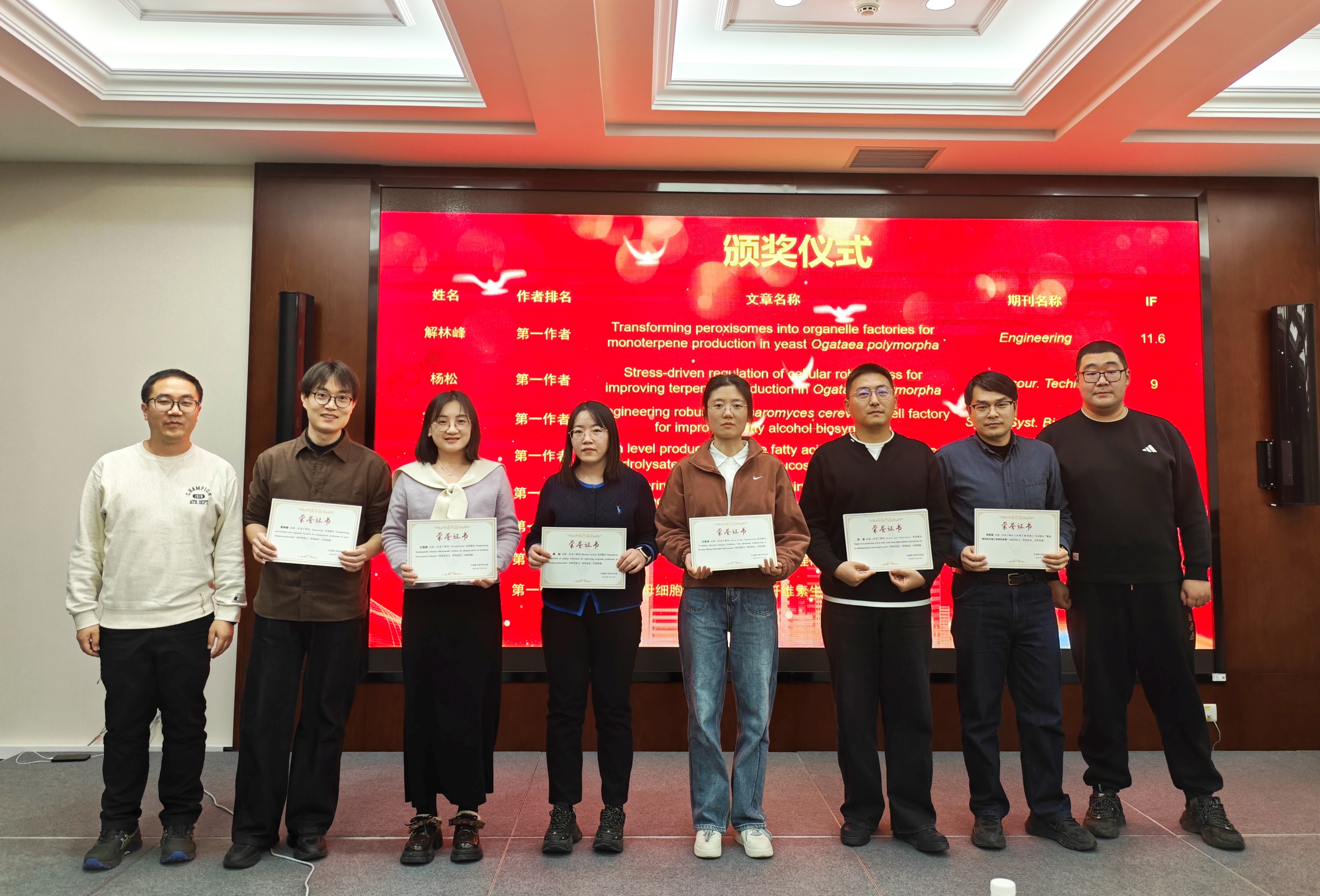 During the awards ceremony, Prof. Yongjin Zhou, Associate Prof. Ruibing Chen and Associate Prof. Jiaoqi Gao presented certificates of honor to the teachers and students who published articles in 2025. At the end, everyone celebrated the ninth anniversary of our group with great enthusiasm and extended their wishes to the members celebrating birthdays from December to February.