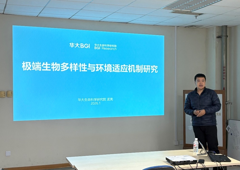 January 14th,2026, A delegation from BGI Research visited our group. Prof. Liang Meng gave a talk titled “Extremophilic biodiversity and environmental adaptation mechanism”. (Text and image by Linfeng Xie)